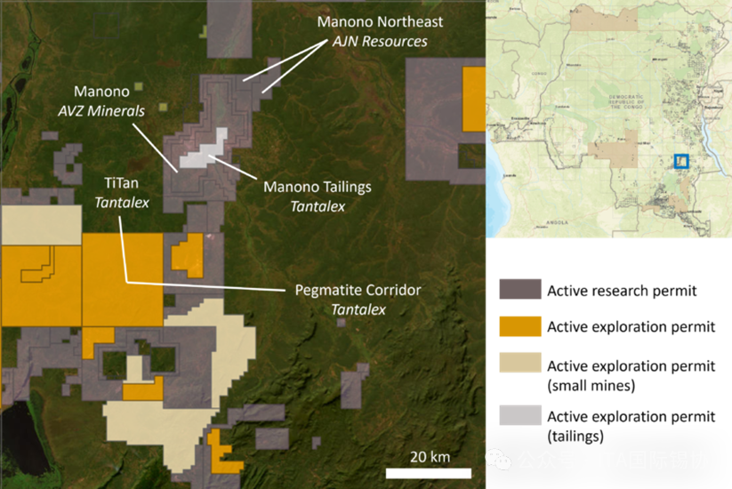 Tantalex 和 AJN Resources 目前正在Manono地区和该国东南部勘探其他项目。另一家勘探公司 AVZ Minerals Ltd 最近报告称,该公司Manono项目的矿产资源量估算有所提高。