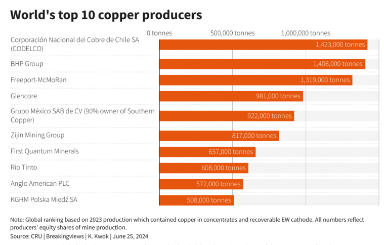 这幅画面并不会变得更清晰。主要的铜矿公司包括市值260亿美元的安托法加斯塔(Antofagasta)(其股价在过去两年翻了一番)和市值850亿美元的Southern Copper。这两家公司的年产量分别超过60万吨和90万吨。但安托法加斯塔65%的股份由智利的卢克西奇家族持有,该家族没有出售股份的迹象,而南方铜业90%的股份由墨西哥大亨——拉雷亚.莫塔-贝拉斯科(Larrea Mota-Velasco)领导的墨西哥集团持有。加拿大价值110亿美元的第一量子矿业公司去年的铜年产量超过70万吨,但其在中美洲州的科布雷巴拿马(Cobre Panamá)铜矿卷入了与国内政府的纠纷。