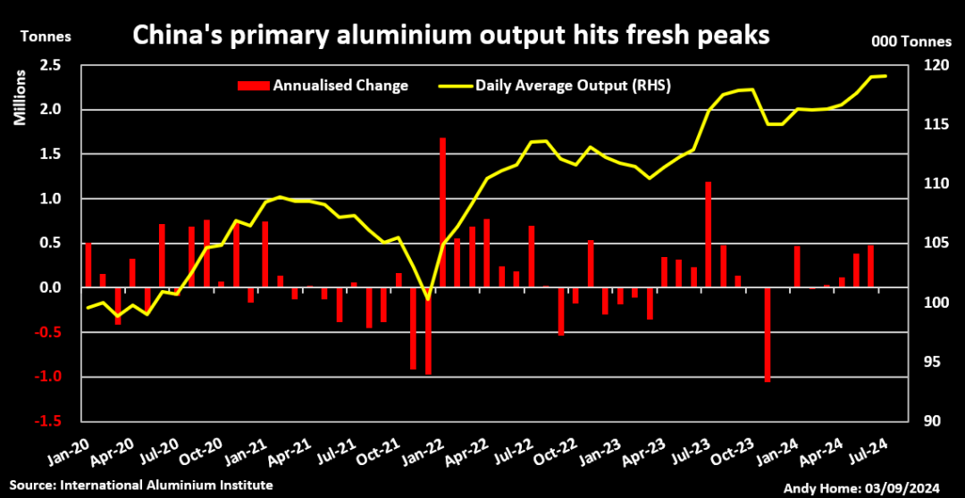 问题在于,中国的国内需求还不够强劲,无法吸收这么多的铝。