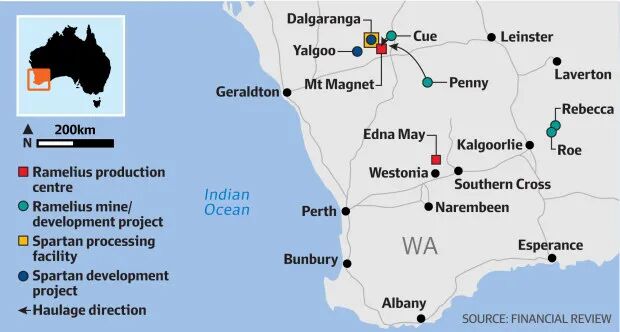 来自斯巴达 Dalgaranga 矿的优质矿石将被送往 Ramelius 附近的选矿设施。