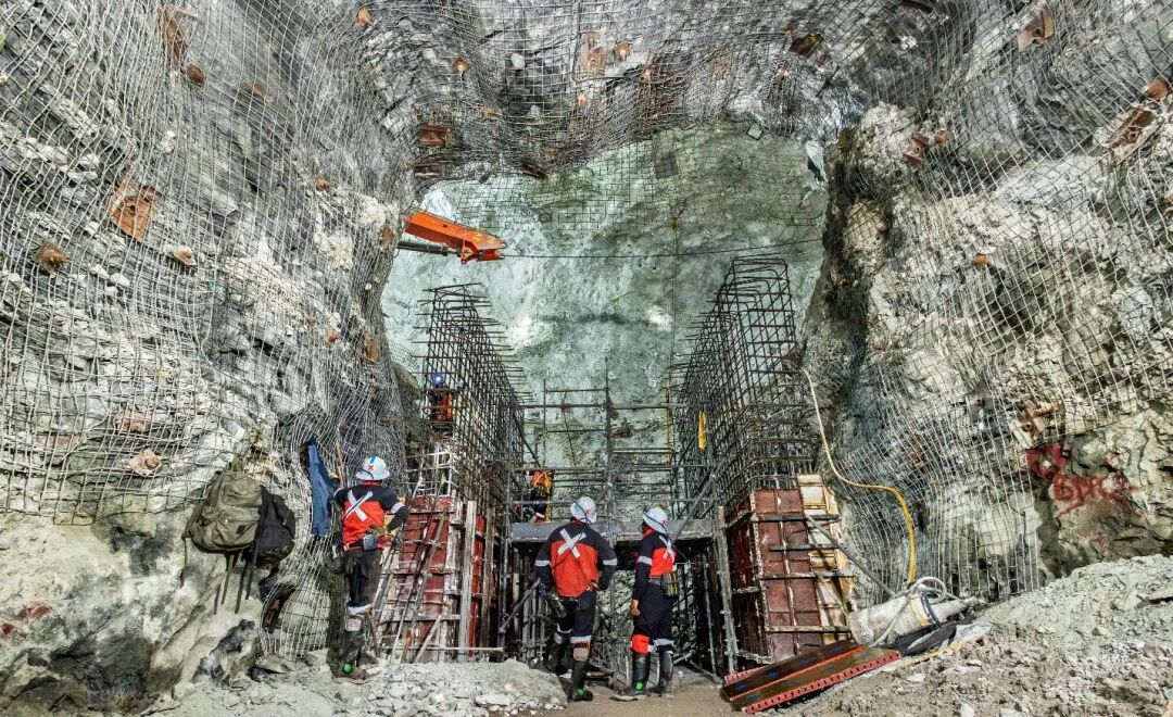 在普拉特瑞夫矿山950米中段井下破碎和筛分系统建设。爆破后的矿石首先经破碎机中破碎,然后提升至3号竖井。预计3号竖井將于2026年第一季度开始提升作业