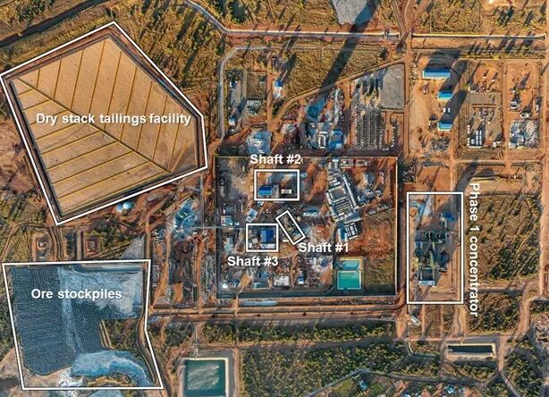 3号竖井正进行装配且进展顺利,预计于2026年第一季度开始提升作业。直径5.1米的竖井管筒已从地表延伸至950米底部,竖井装卸井口的挖掘工程也已经完成。井架和卷扬机的安装工作进展顺利,且卷扬机的机械安装也即将完成。