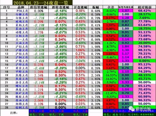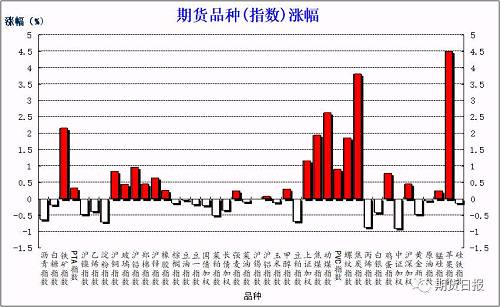 本周一(4月23日,下同),期货市场涨跌互现。涨幅比较大的是苹果,涨幅近4.5%,其次是焦炭,涨幅近4%,然后是动力煤,涨幅超2.5%;跌幅比较大的是中证500、丙烯,跌幅近1%,其次是淀粉、豆粕、沥青、菜粕,跌幅超0.5%,然后是黄金、白银、沪镍、乙烯、十年国债,跌幅近0.5%。