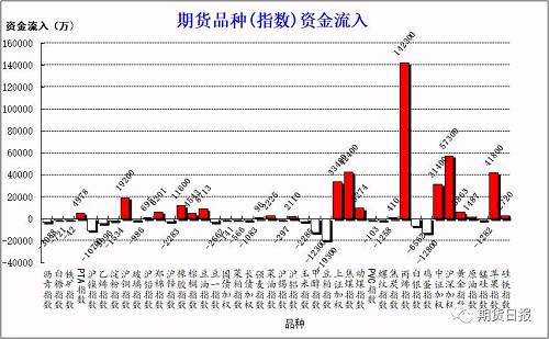 本周一,期货市场资金流入流出互半。流入较大的是焦炭,14.23亿、沪深300,5.73亿、焦煤,4.24亿、苹果,4.18亿、上证50,3.34亿;流出较大的是豆粕,1.93亿、白银,1.28亿、甲醇,1.23亿、沪镍,1.07亿、丙烯,6562万。