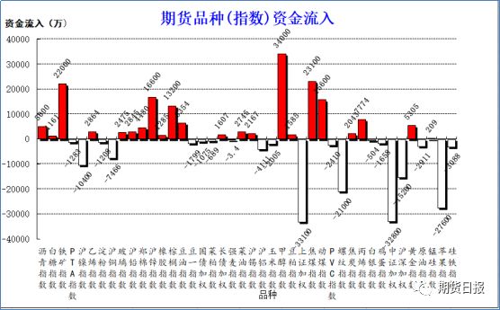 上周五,期货市场资金多数流入。流入较大的是甲醇,3.4亿、焦煤,2.31亿、铁矿石,2.2亿、沪锌,1.66亿、动力煤、1.56亿;流出较大的是上证50,3.31亿、中证500,3.28亿、苹果,2.76亿、螺纹钢,2.1亿、沪深300,1.52亿。
